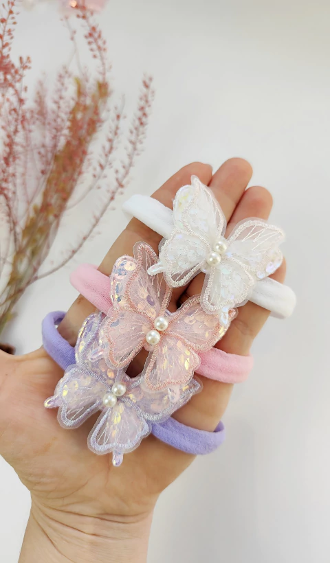 As borboletas são aplicadas em meia de seda super confortável, garantindo que não apertem a cabecinha do seu pequeno. Ideal para usar desde o nascimento até 2 anos, elas se adaptam perfeitamente ao crescimento da sua bebê, proporcionando sempre um ajuste suave.